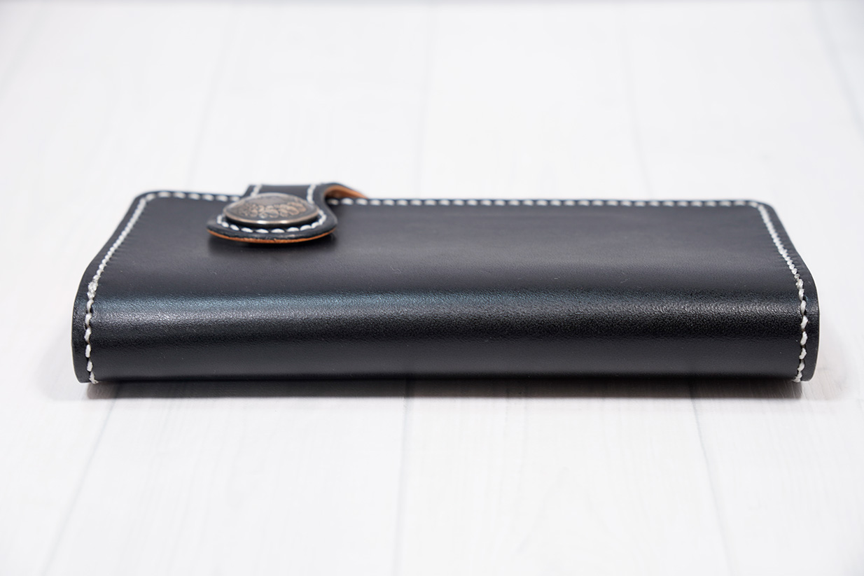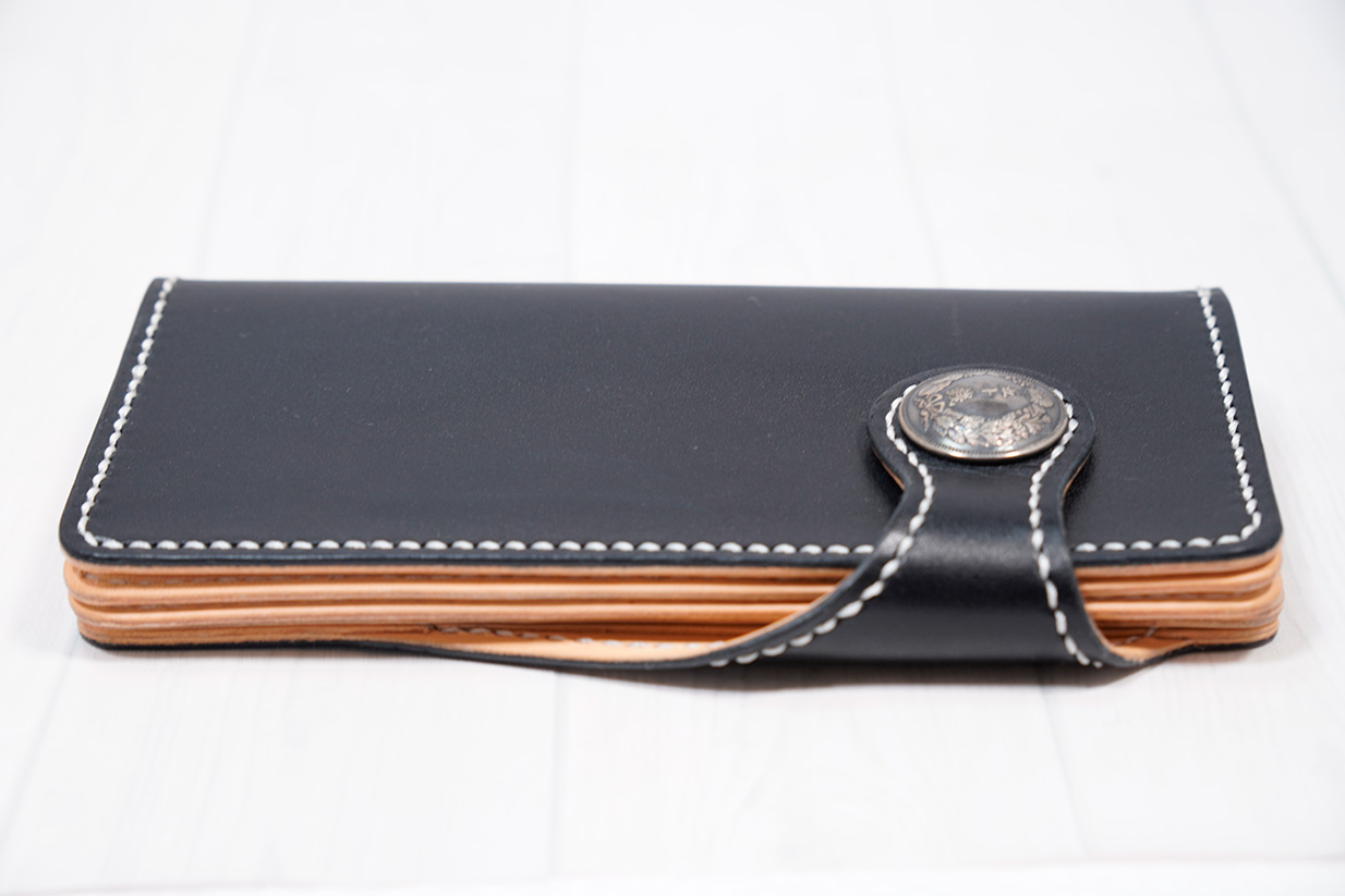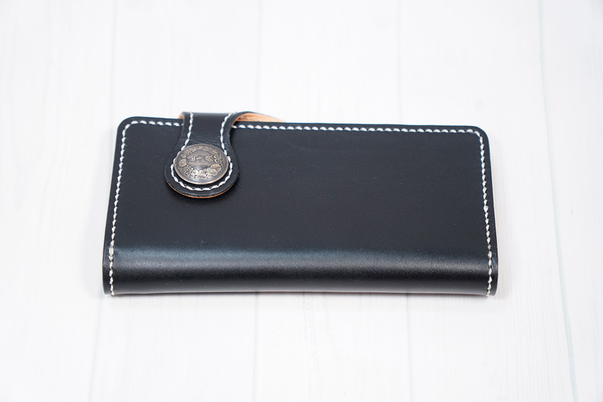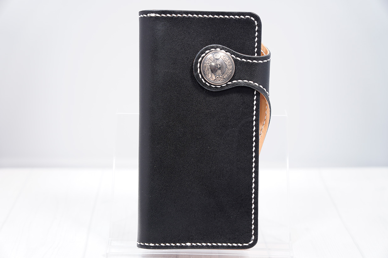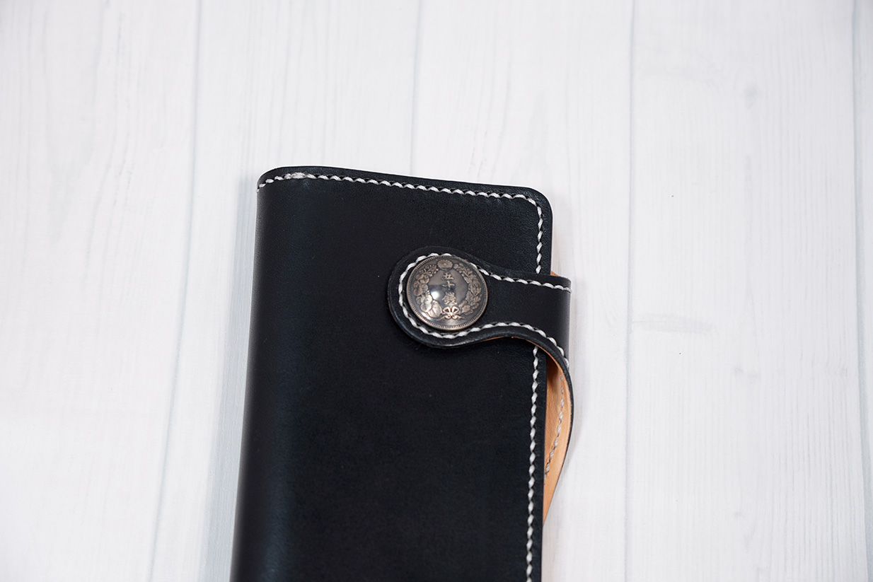 扱いやすい構造でシンプルなデザインに古銭コンチョを施し、ちょっとだけワイルドに。