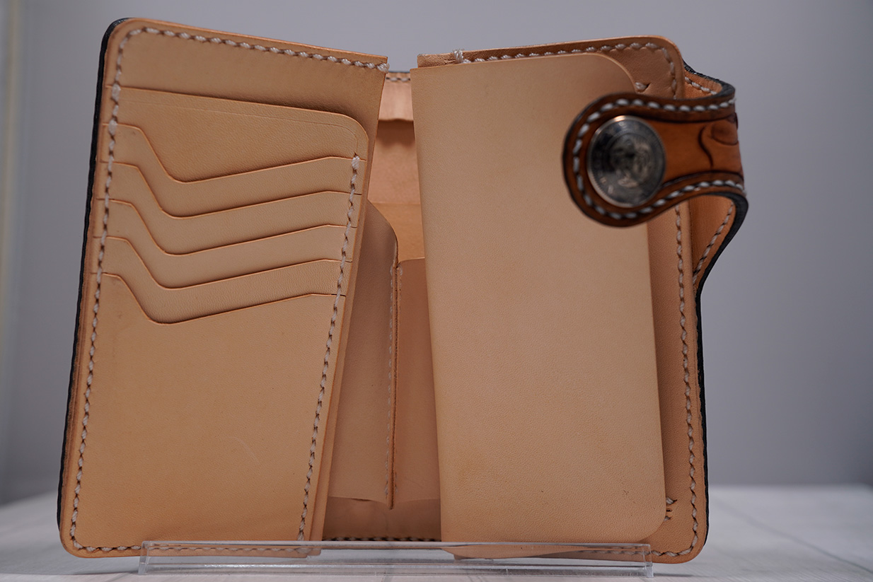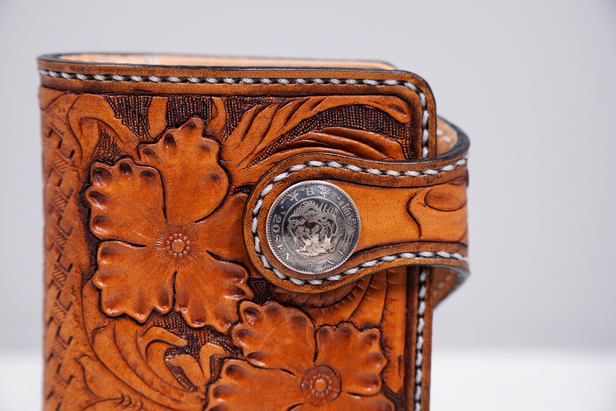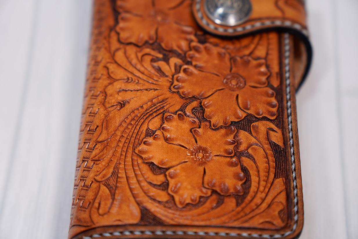 カービングとスタンピングを施したセミロングウォレット